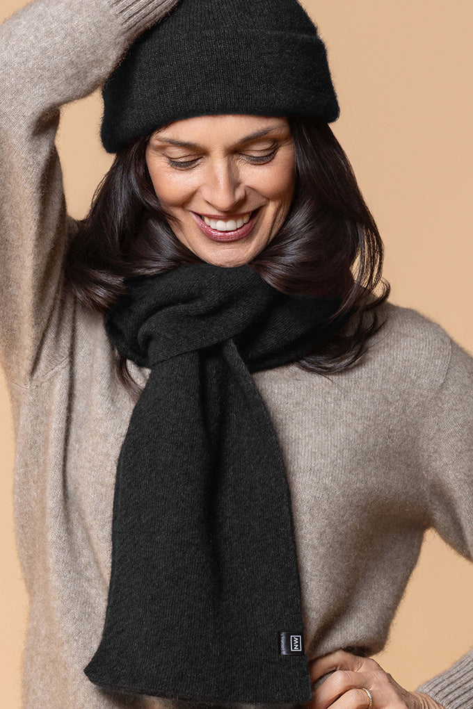This new single knit scarf with subtle watermark pattern is the perfect fashion accessory to add to your Winter look.