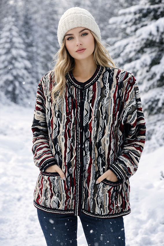 Aklanda's Cardigan has been designed with a bold array of colours, and offers a complex knitted pattern to suit your individual personality. It is a mid-weight stitch knit that is a great all rounder, featuring 6 buttons to a crew neckline. It also boosts a crafted detailed trim for maximum style. Layer it up or simply enjoy the soft merino wool fibres on your skin.