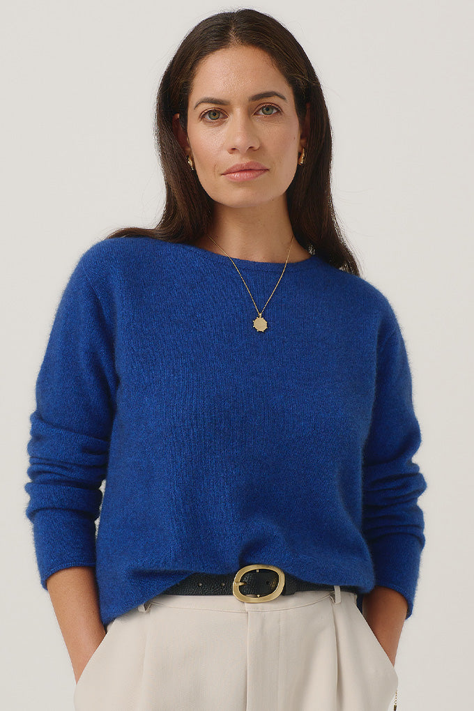As its name suggests every wardrobe needs one of these. The ultimate in cosy comfort, the Essential will take you wherever you want to go. With a dipped back hem and crew neckline, it's a timeless silhouette you'll love. Pair it with the essential snood and - voila! You have a rollneck. It's finished off with Merinomink branding.