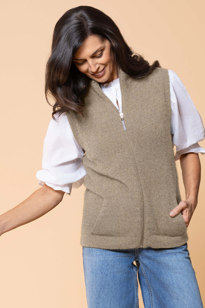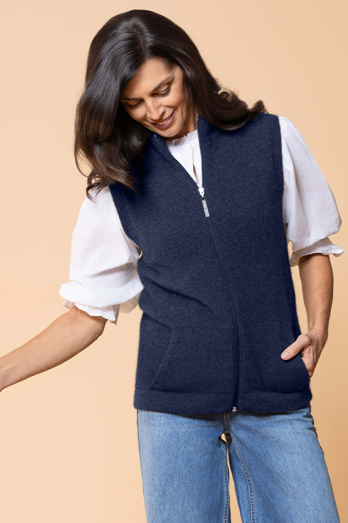 Designed for effortless layering, this zip-through vest features integrated pockets and is knitted in fine single jersey. WholeGarment™ seamless construction enhances comfort and movement while delivering a precise, streamlined aesthetic.